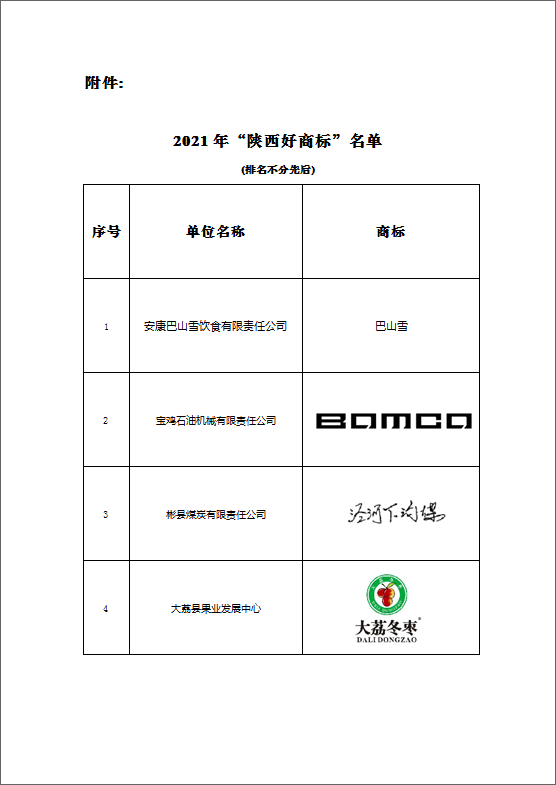 现将名单予以公示,公示期7天。如有异议,请在公示期内以实名书面方式反馈至陕西好商标评价工作管理办公室,书面意见请写明提出异议的事实依据及证明材料。
