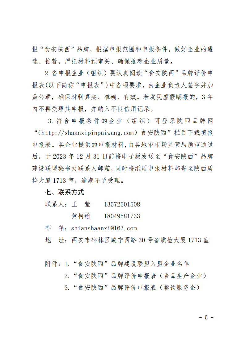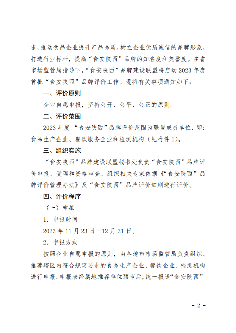 关于开展2023年度“食安陕西”品牌评价工作的通知